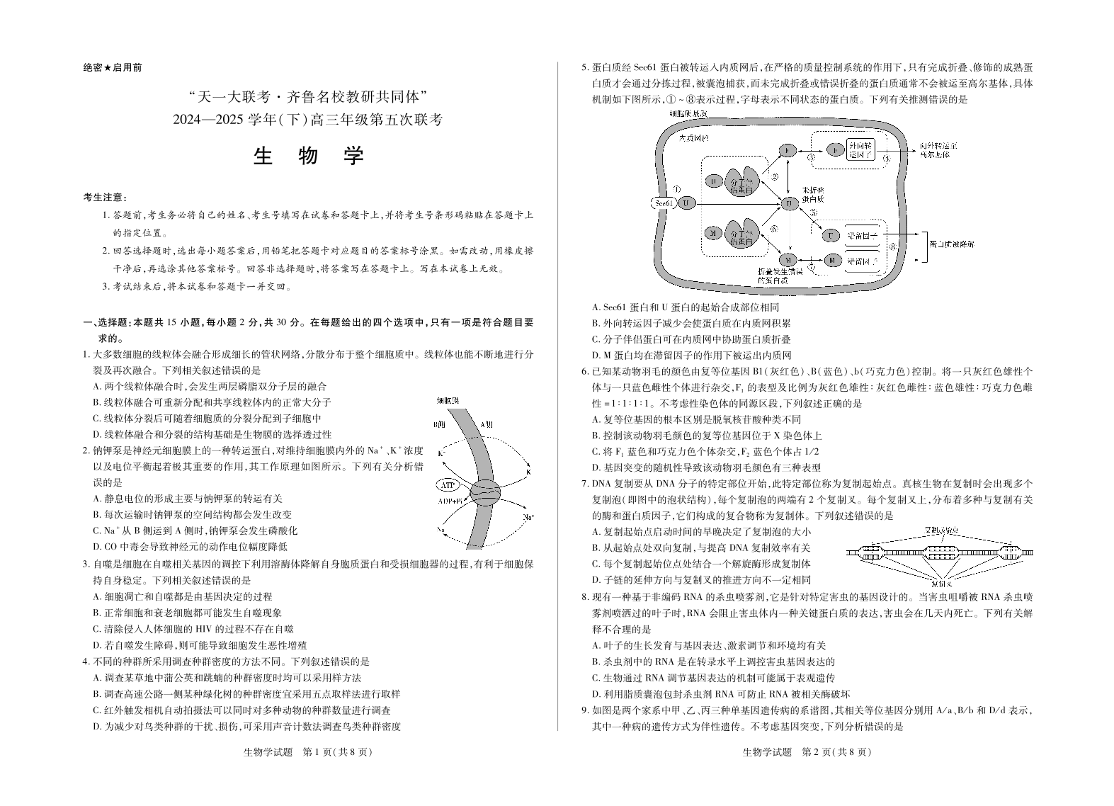 山东省齐鲁名校教研体2024-2025学年(下)高三年级第五次联考 生物.pdf