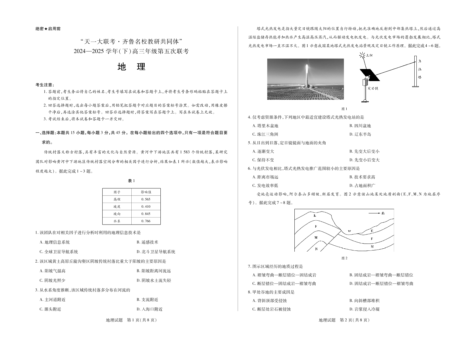 山东省齐鲁名校教研体2024-2025学年(下)高三年级第五次联考 地理.pdf