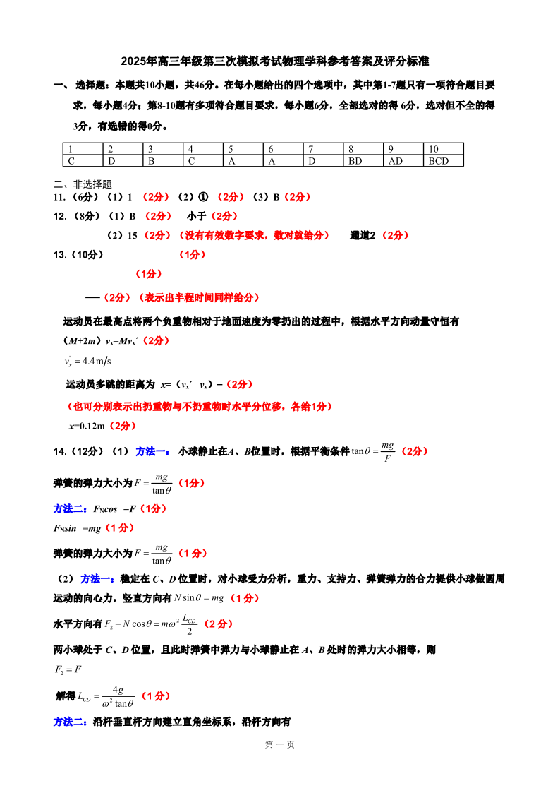 吉林地区普通中学2025届高中毕业年级第三次调研测试 物理答案.pdf