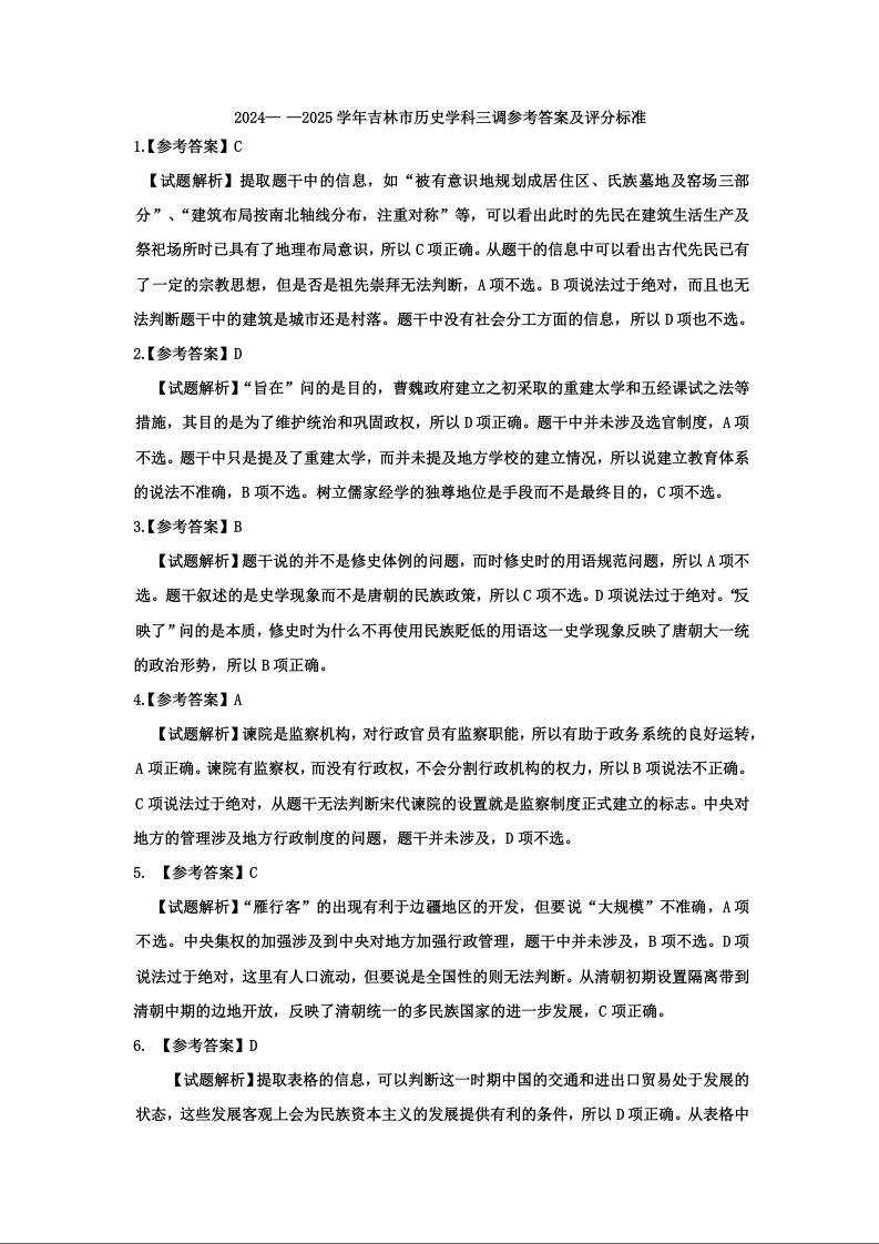 吉林地区普通中学2025届高中毕业年级第三次调研测试 历史答案.docx