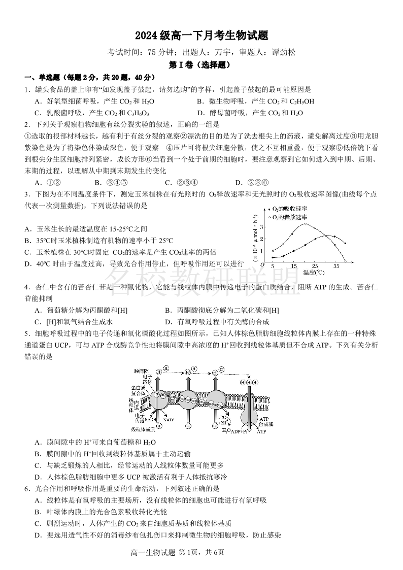 重庆市万州二中2024-2025学年高一下学期3月月考 生物.pdf