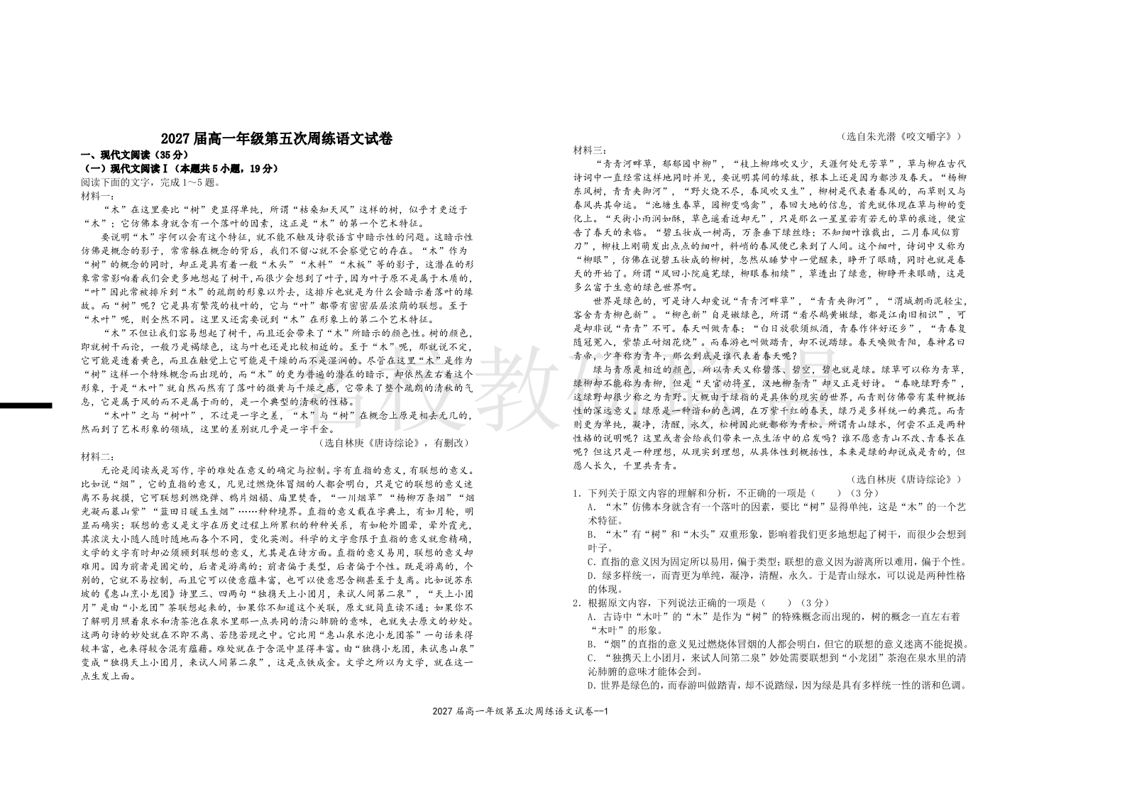 2027届高一年级第五次周练 语文(含答案).pdf