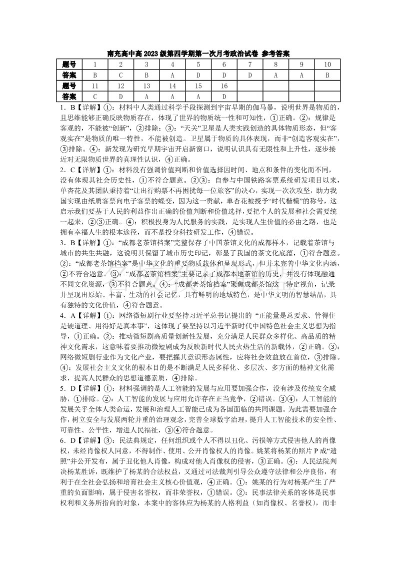 南充高中高2023级第四学期第一次月考 政治答案.pdf