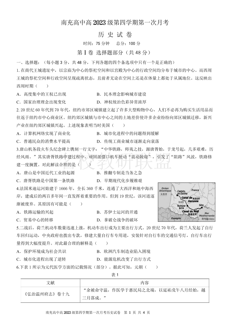 南充高中高2023级第四学期第一次月考 历史.pdf