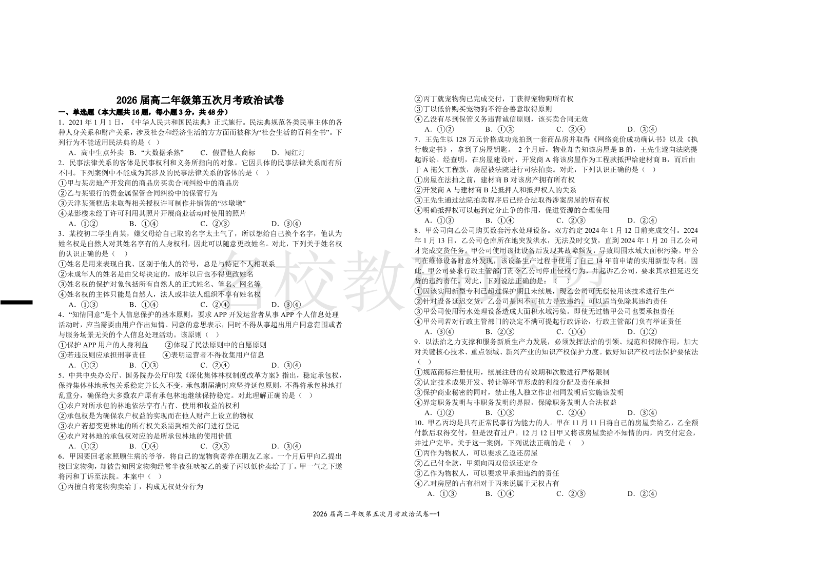 2026届高二年级第五次月考 政治(含答案).pdf