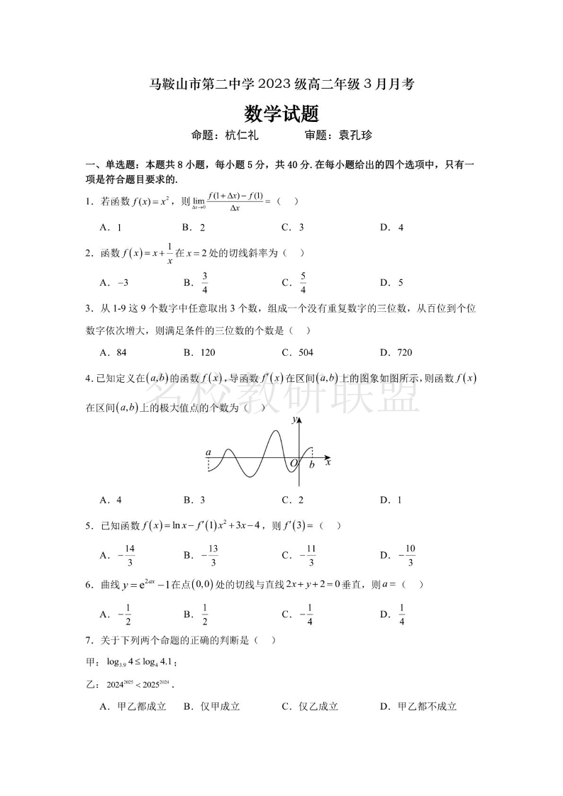 安徽省马鞍山市第二中学2024-2025学年高二下学期3月月考 数学(含答案).pdf