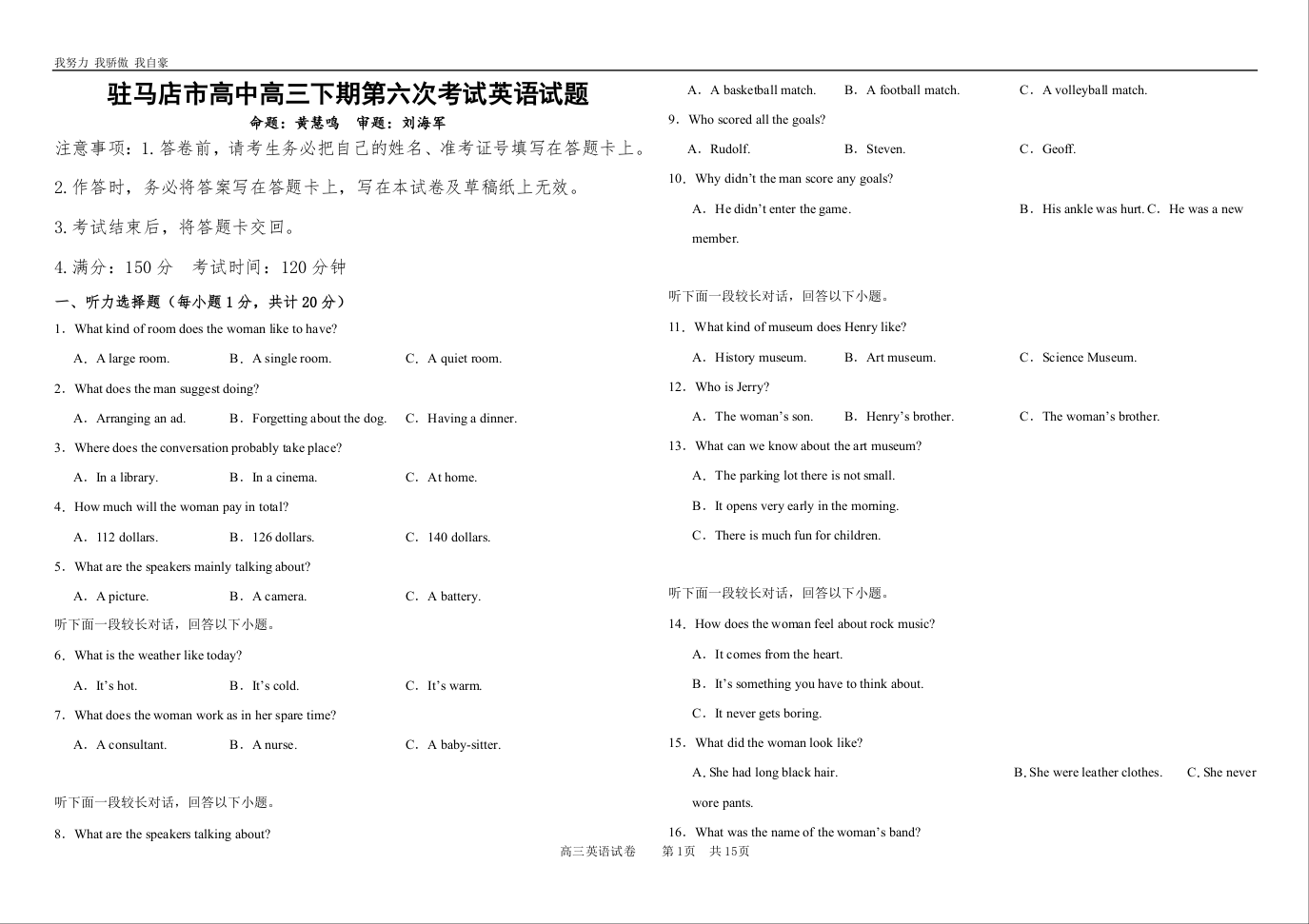 河南省驻马店高级中学2025届高三下学期4月月考 英语(含答案).docx