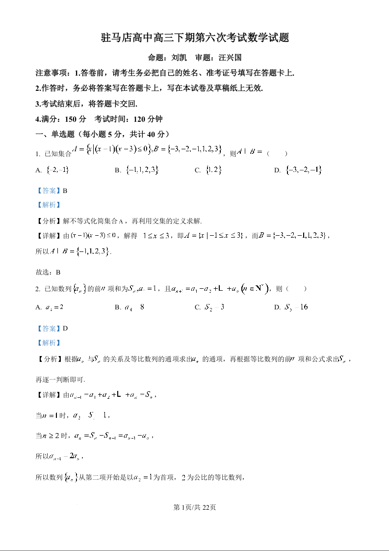 河南省驻马店高级中学2025届高三下学期4月月考 数学答案.docx
