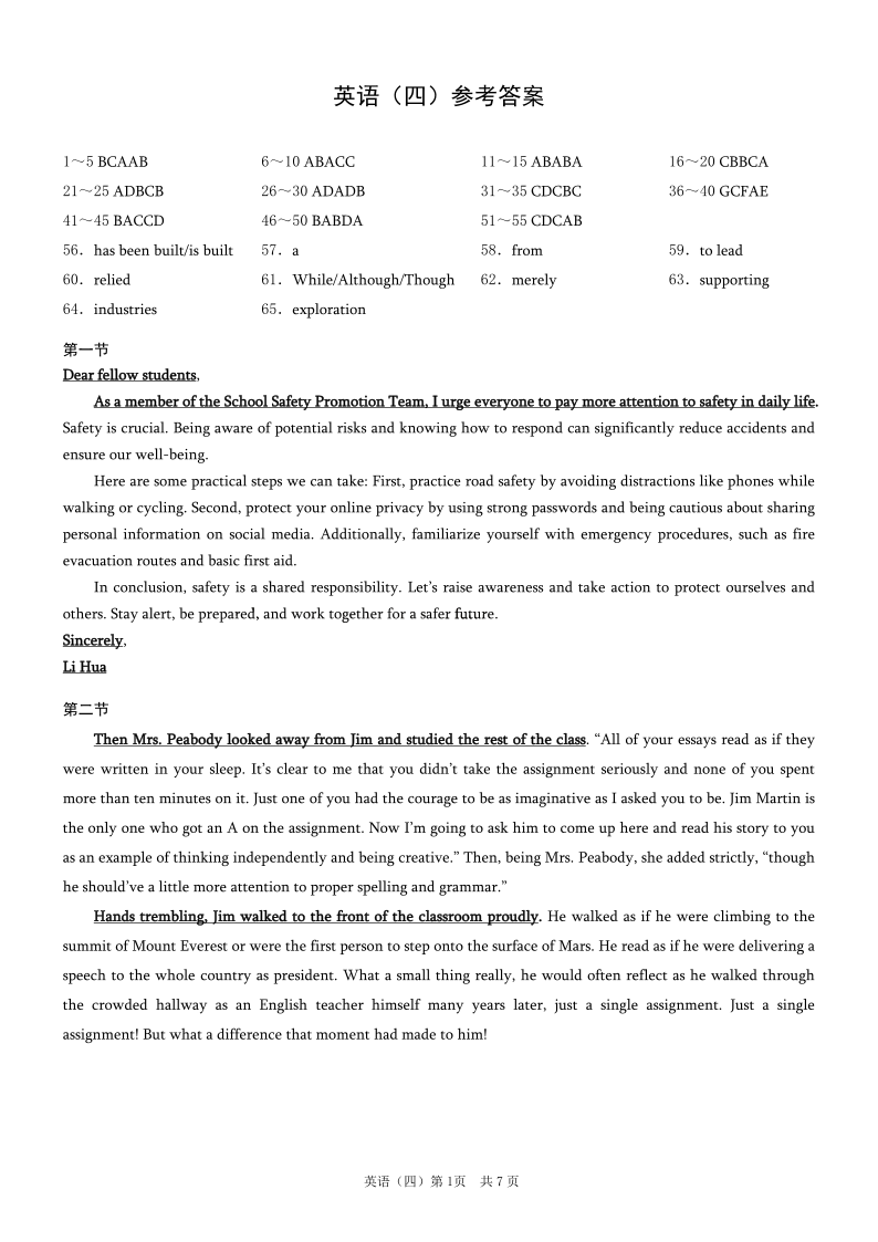 重庆市2025年普通高等学校招生全国统一考试康德调研(四)英语答案.pdf