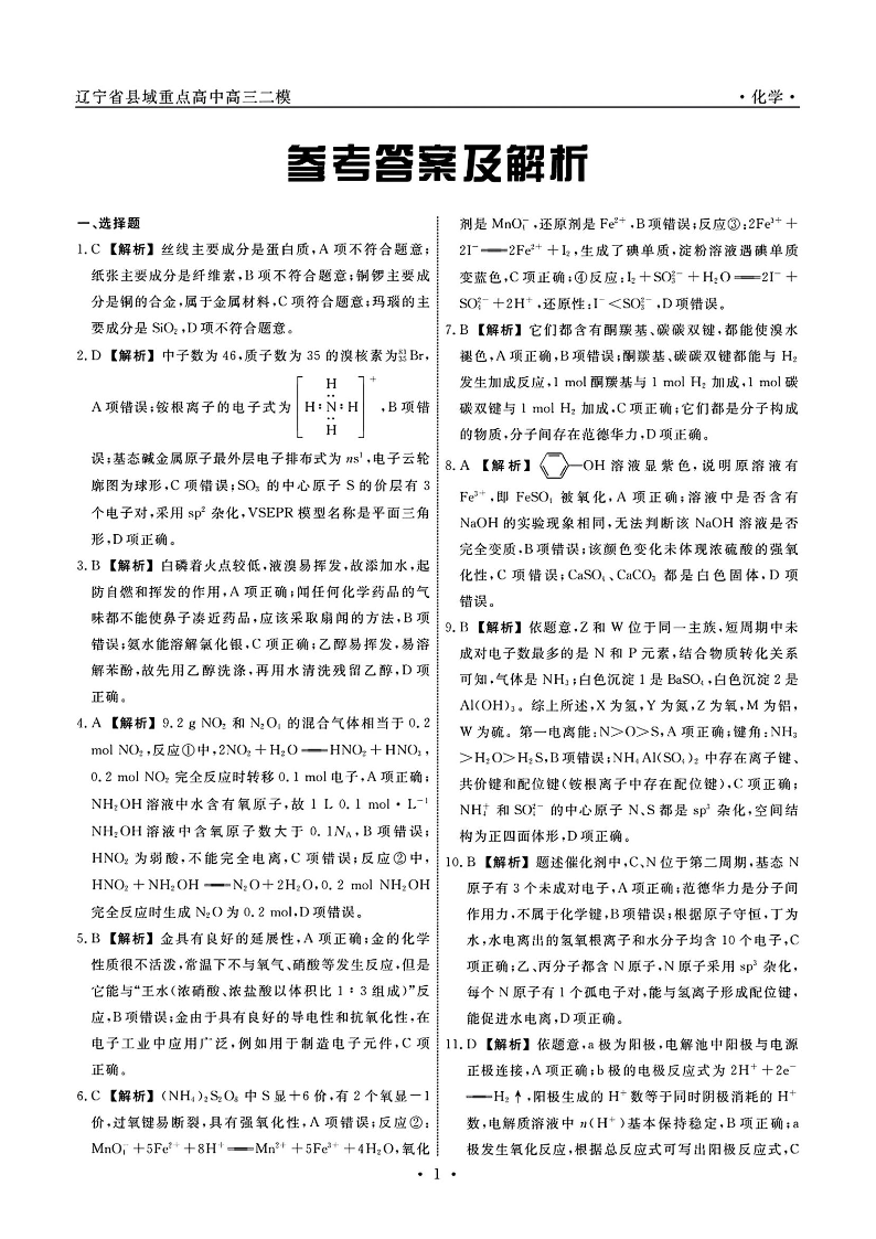 辽宁省县域重点高中2024-2025学年度高三二模试卷 化学答案.pdf