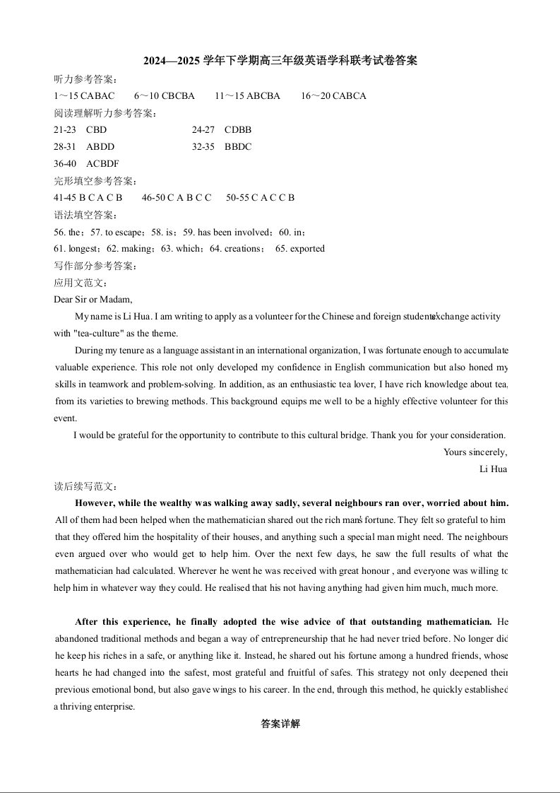 江西省十校协作体2025届高三第二次联考 英语答案.docx