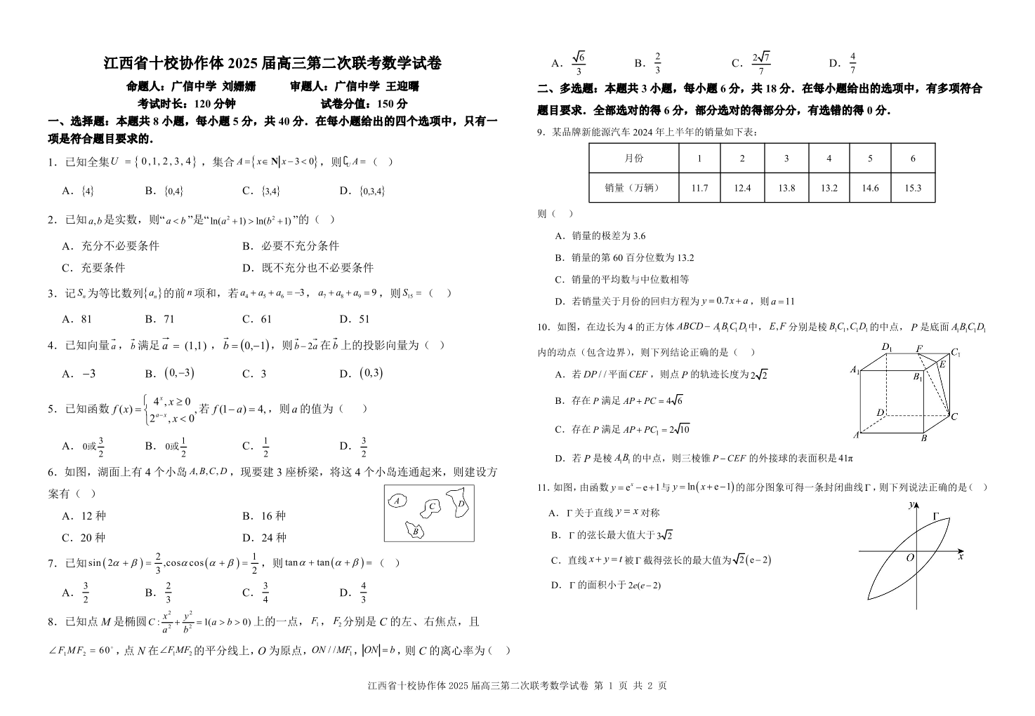 江西省十校协作体2025届高三第二次联考 数学.pdf