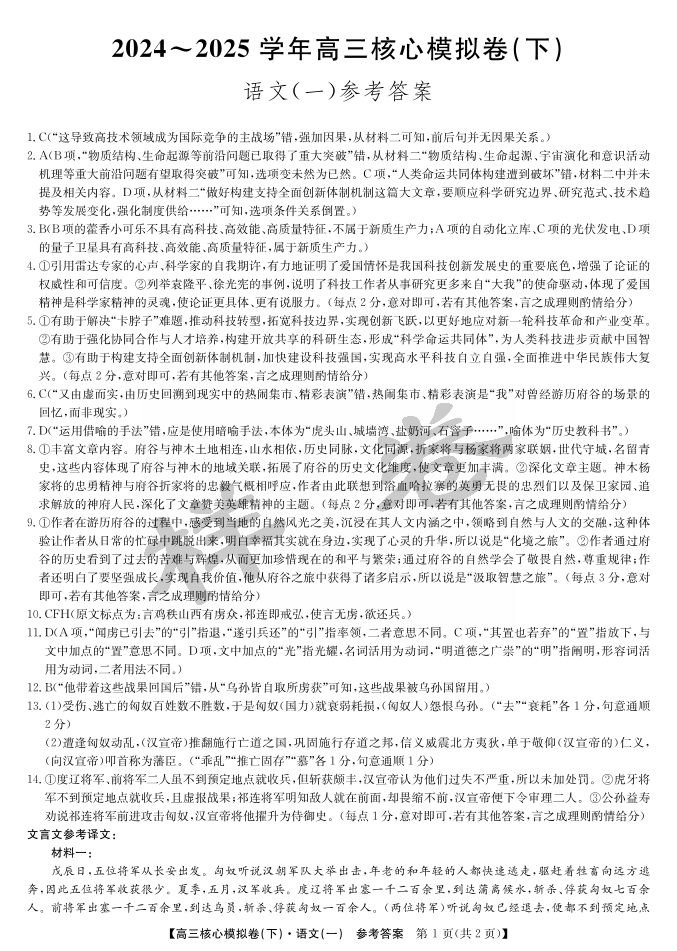 湖北省2025届九师联盟核心模拟卷(下)(样卷)语文答案.pdf