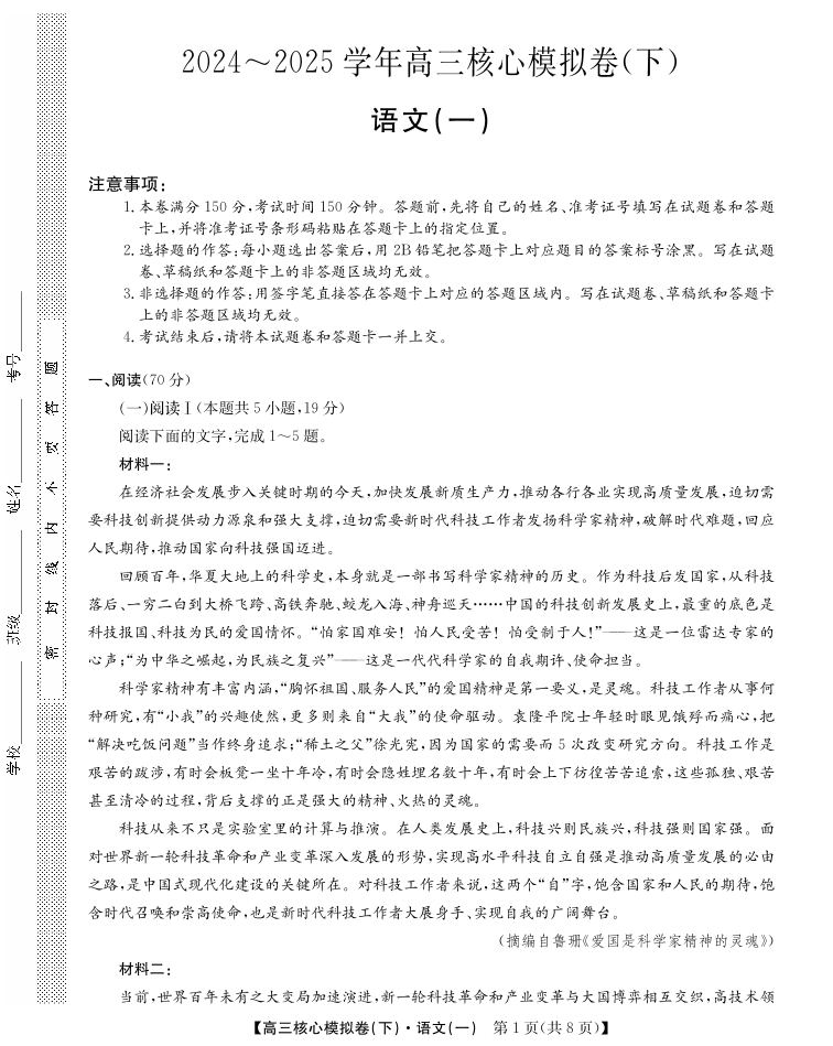 湖北省2025届九师联盟核心模拟卷(下)(样卷)语文.pdf
