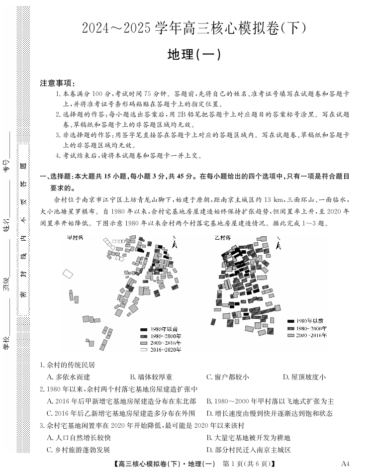 湖北省2025届九师联盟核心模拟卷(下)(样卷)地理.pdf