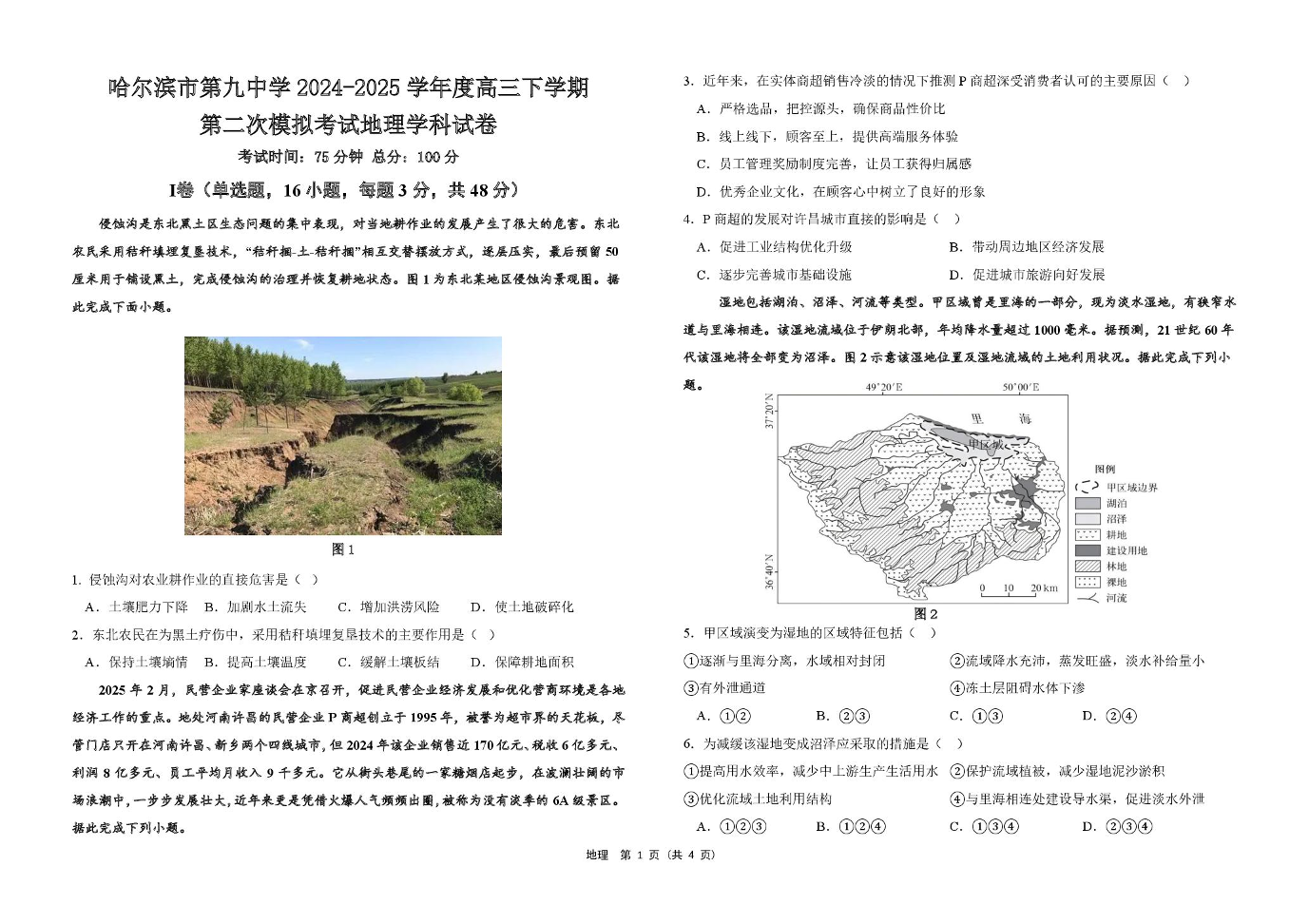 哈尔滨市第九中学校2025届高三下学期第二次模拟考试 地理(含答案).pdf