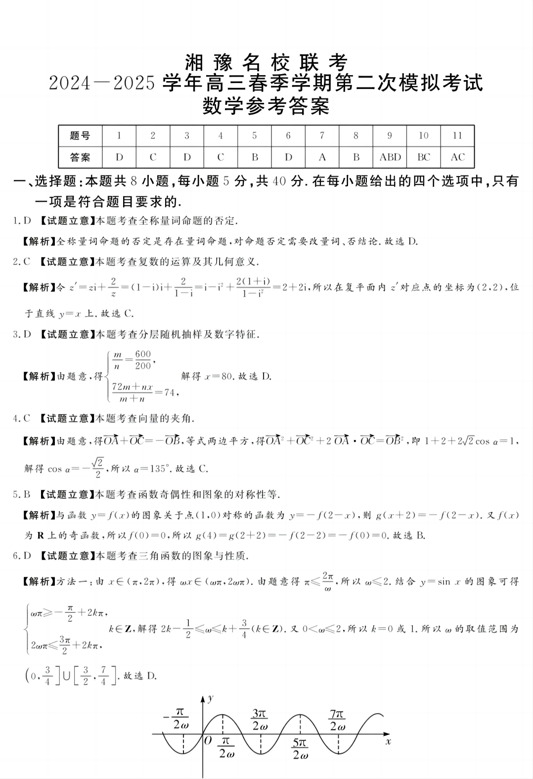 湘豫名校联考2024-2025学年高三春季学期第二次模拟考试 数学答案.pdf