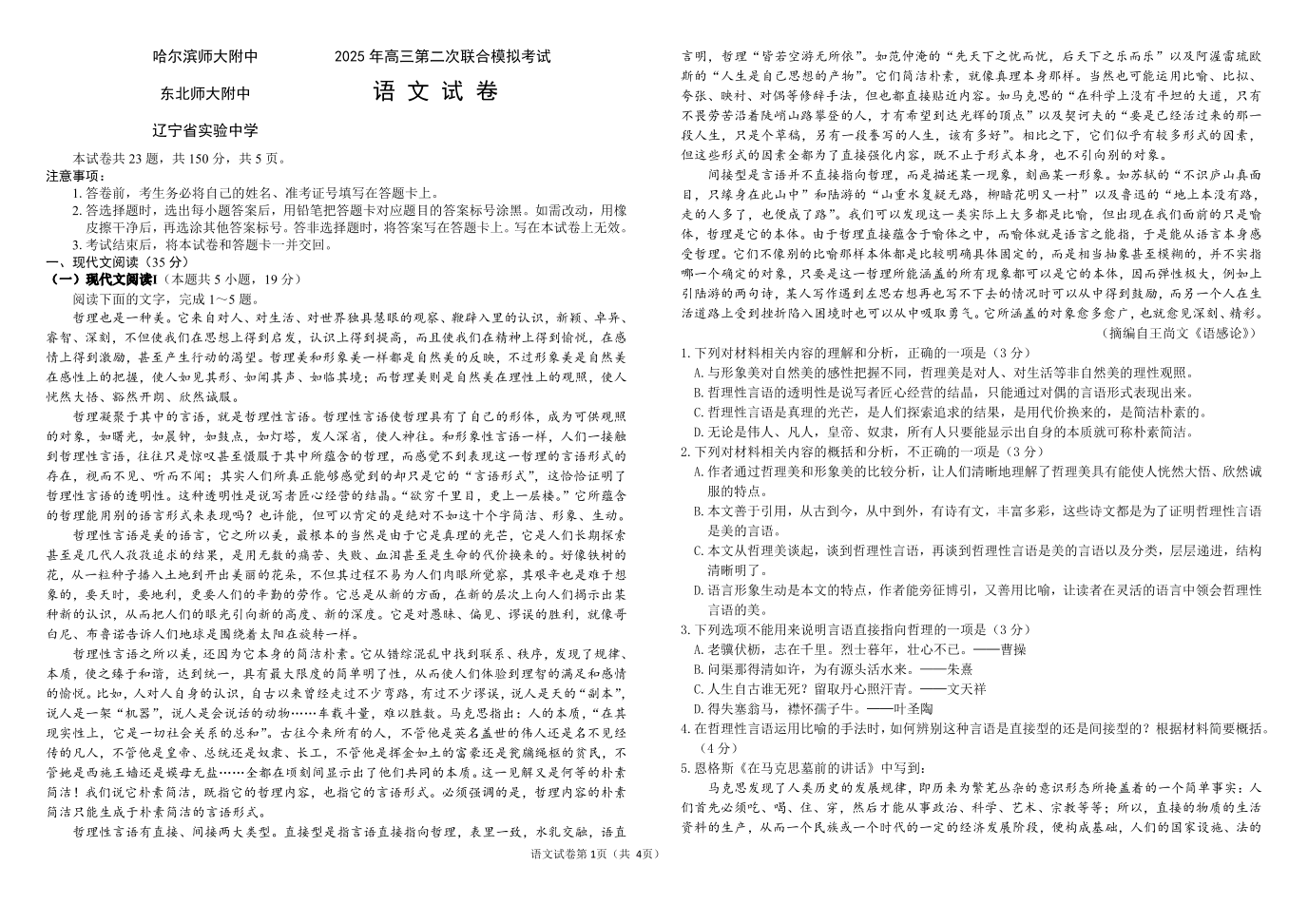 东北三省三校2025届高三下学期第二次联合模拟考试 语文.pdf