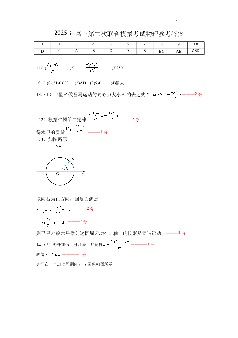 东北三省三校2025届高三下学期第二次联合模拟考试 物理答案.docx