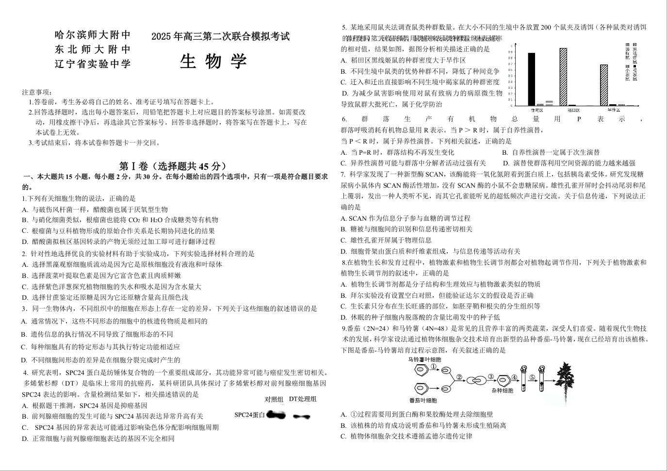东北三省三校2025届高三下学期第二次联合模拟考试 生物.docx