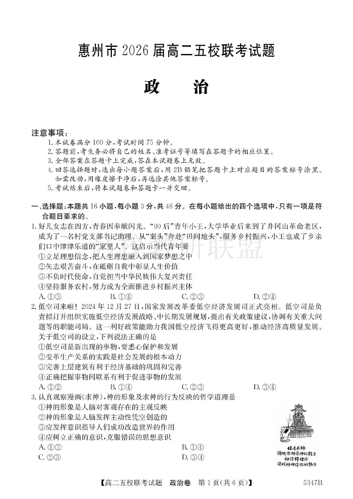 广东省惠州市2026届高二五校联考 政治(含答案).pdf