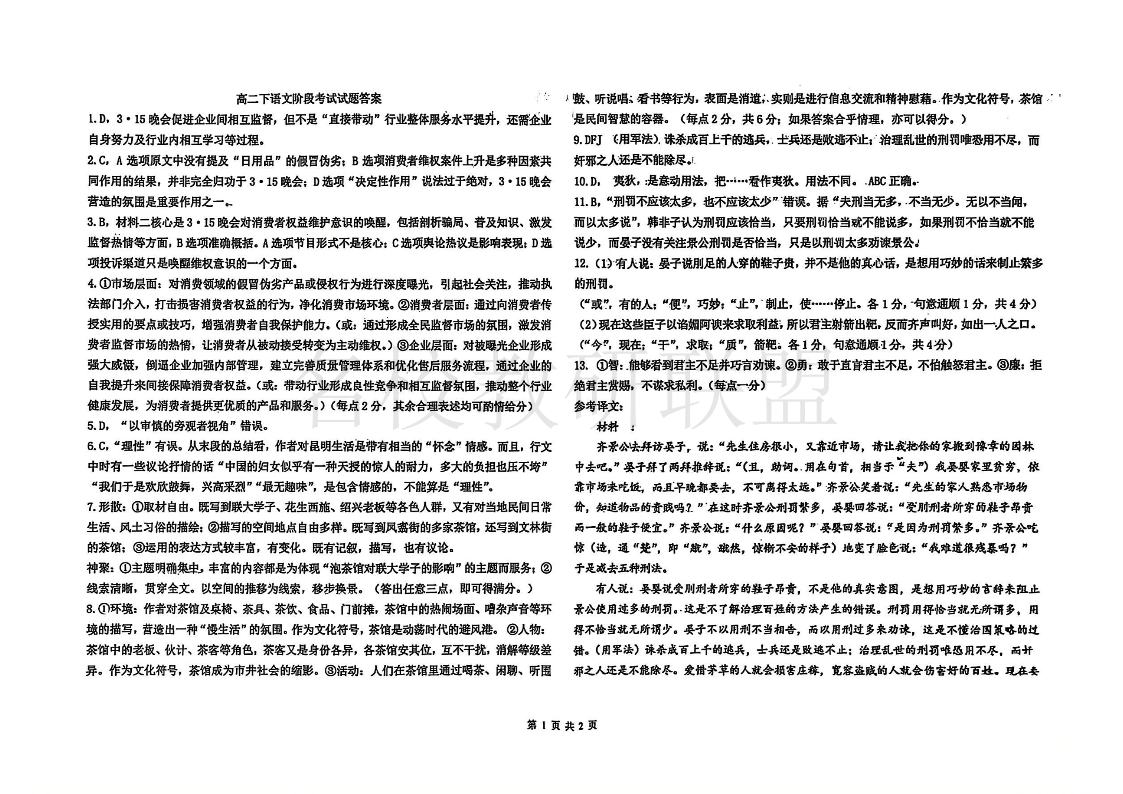 东北师范大学附属中学2024-2025学年高二年级3月阶段验收考试 语文答案.pdf
