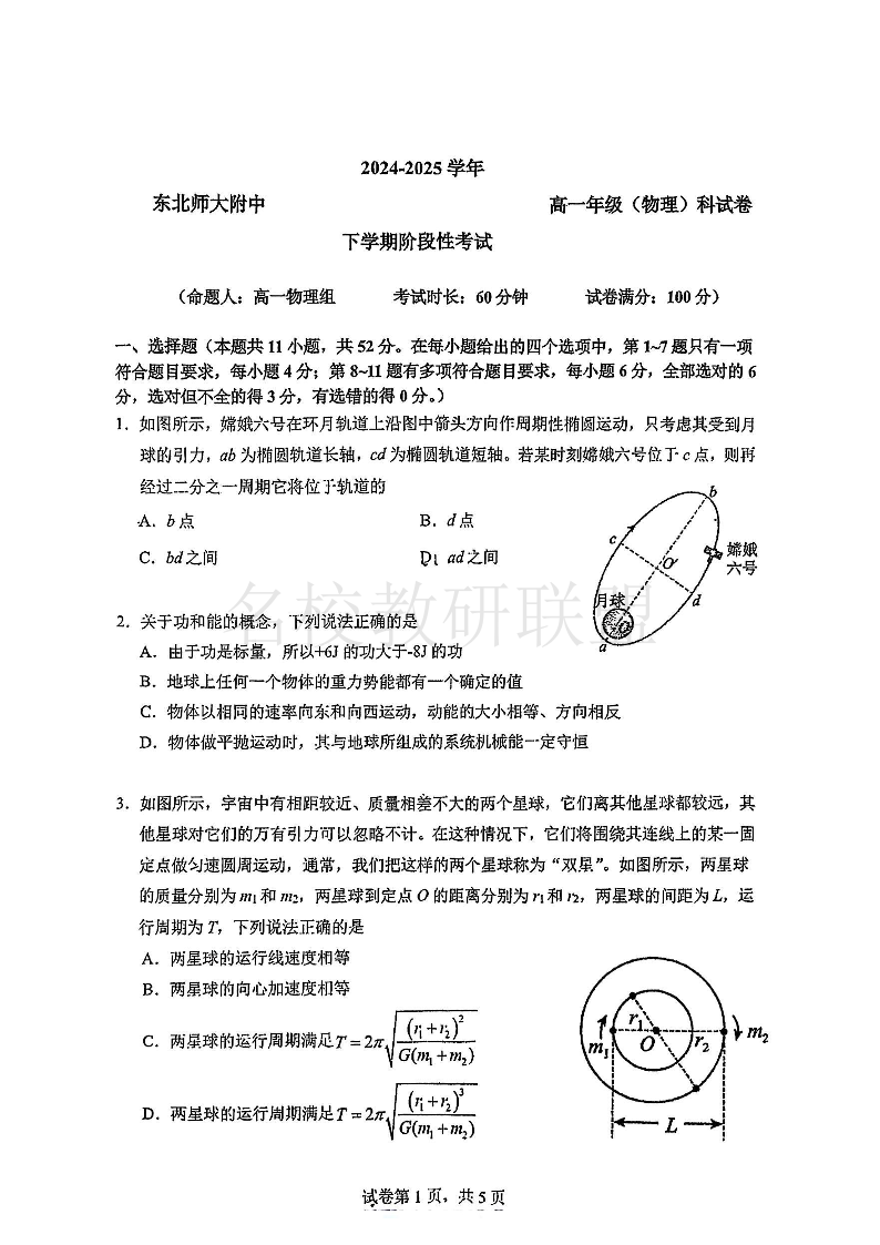 东北师范大学附属中学2024-2025学年高二年级3月阶段验收考试 物理.pdf