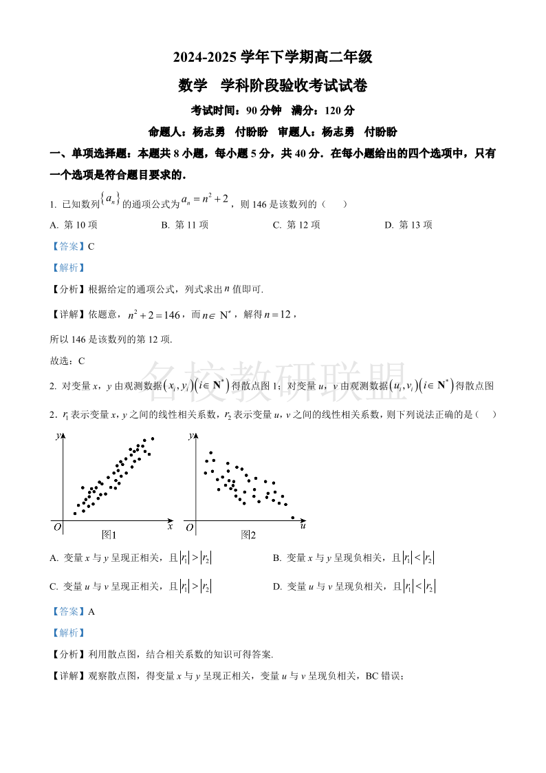 东北师范大学附属中学2024-2025学年高二年级3月阶段验收考试 数学答案.pdf