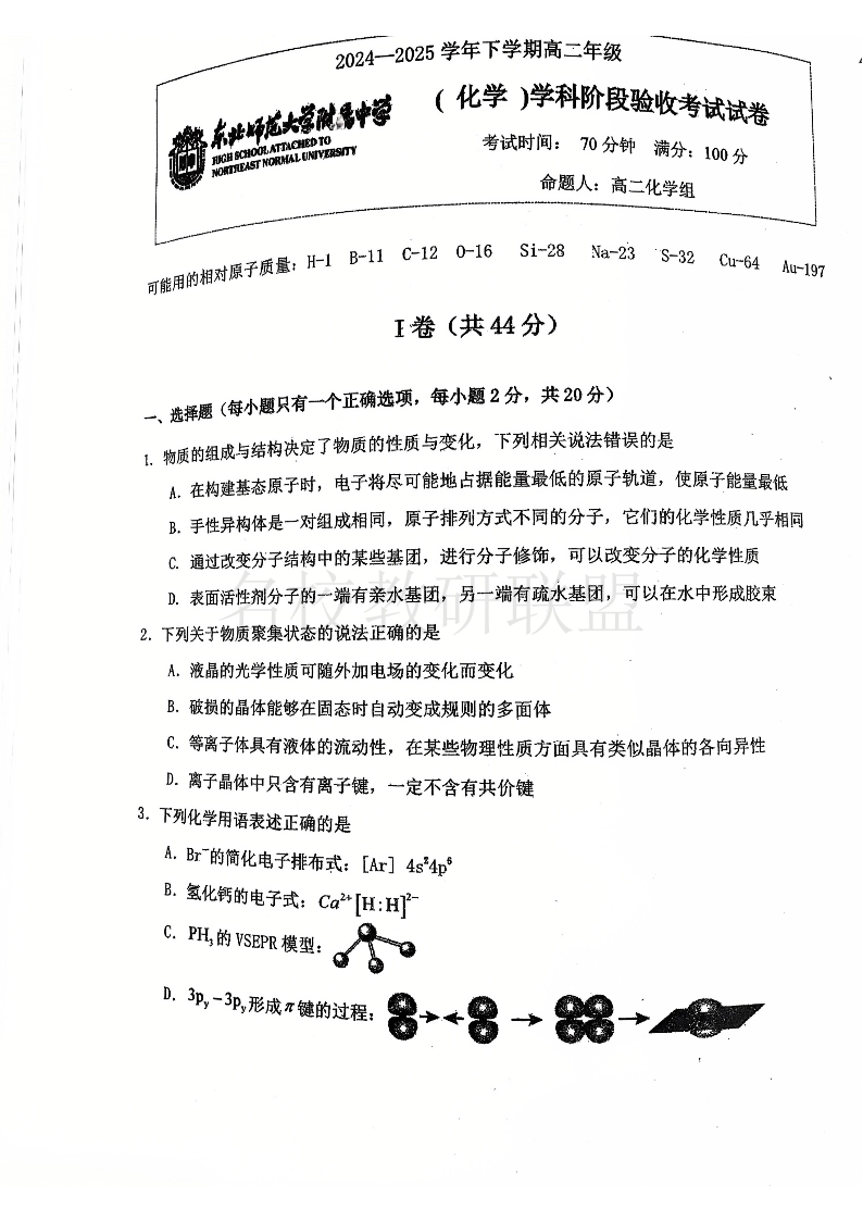 东北师范大学附属中学2024-2025学年高二年级3月阶段验收考试 化学.pdf