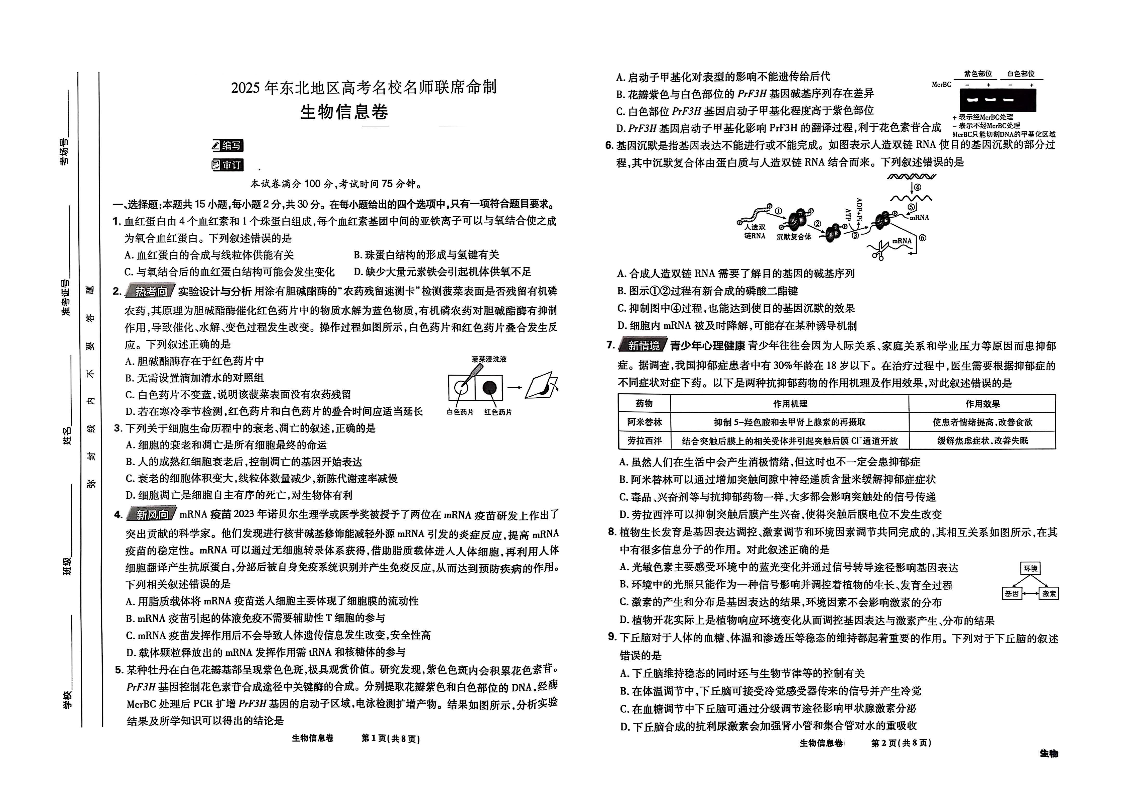 2025年东北地区高考名师名校联席命制-生物信息卷(含答题卡+答案).pdf