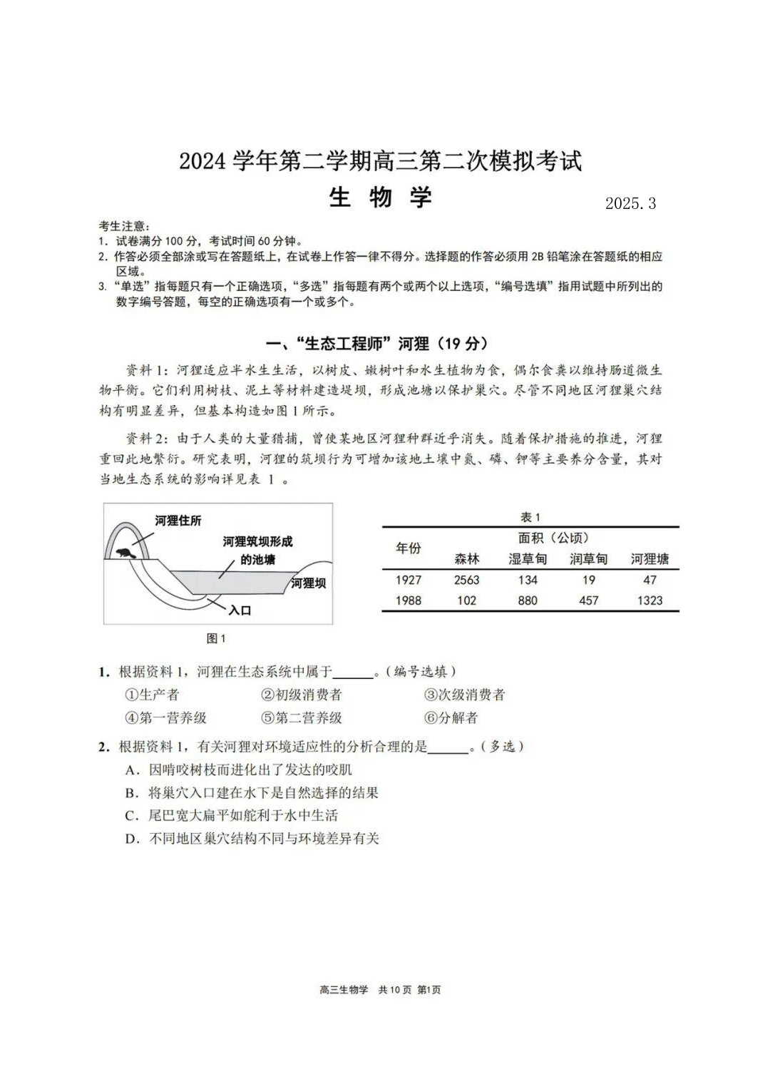 上海市崇明区2025届高三第二次模拟考试 生物.pdf