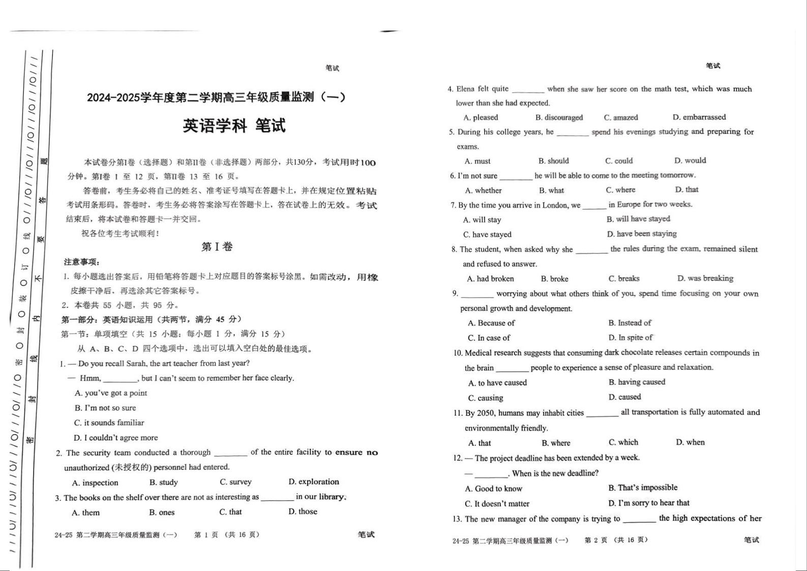 天津市南开区2024-2025学年度第二学期高三年级质量监测(一)英语.docx