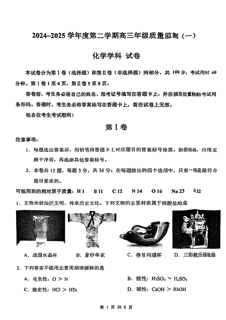 天津市南开区2024-2025学年度第二学期高三年级质量监测(一)化学.pdf