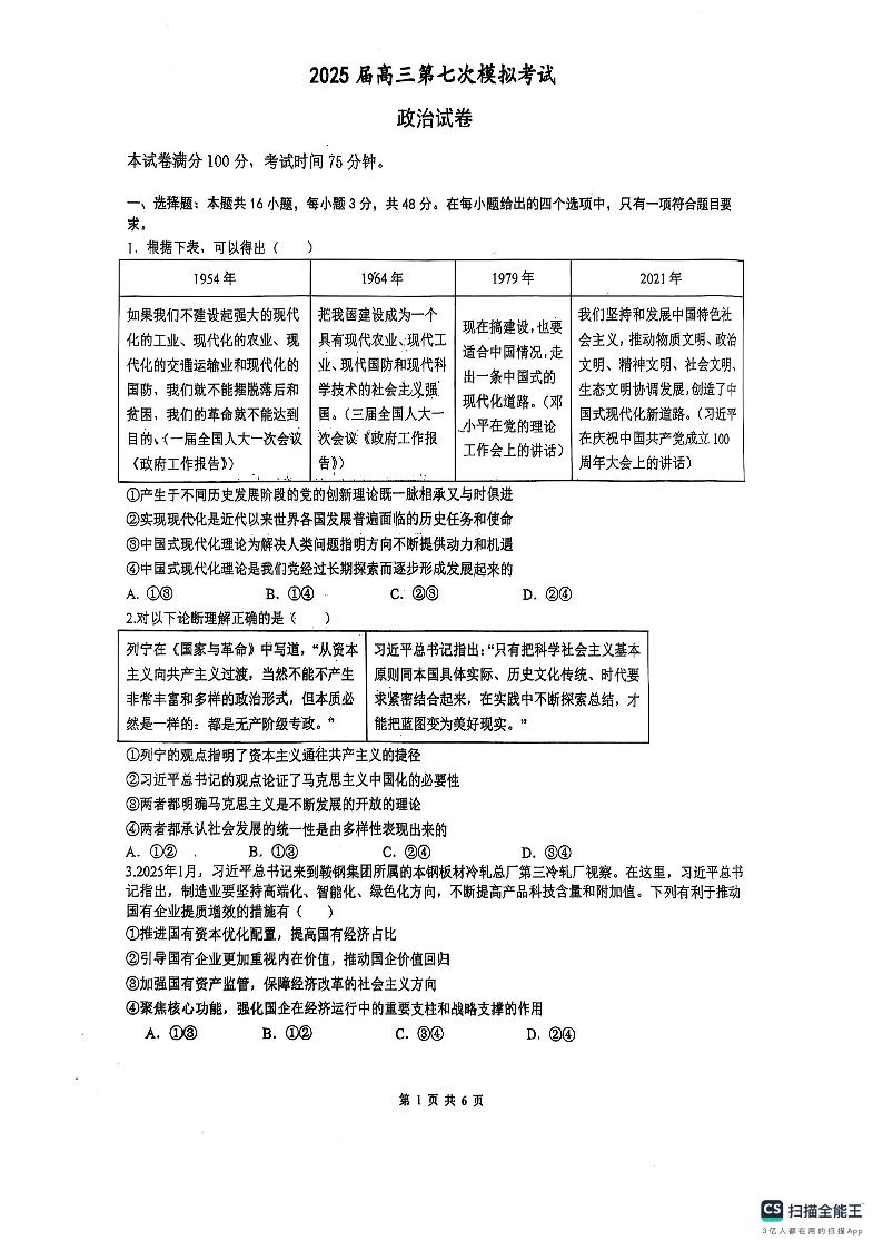 辽宁省本溪市高级中学2025届高三下学期第七次模拟考试 政治.pdf