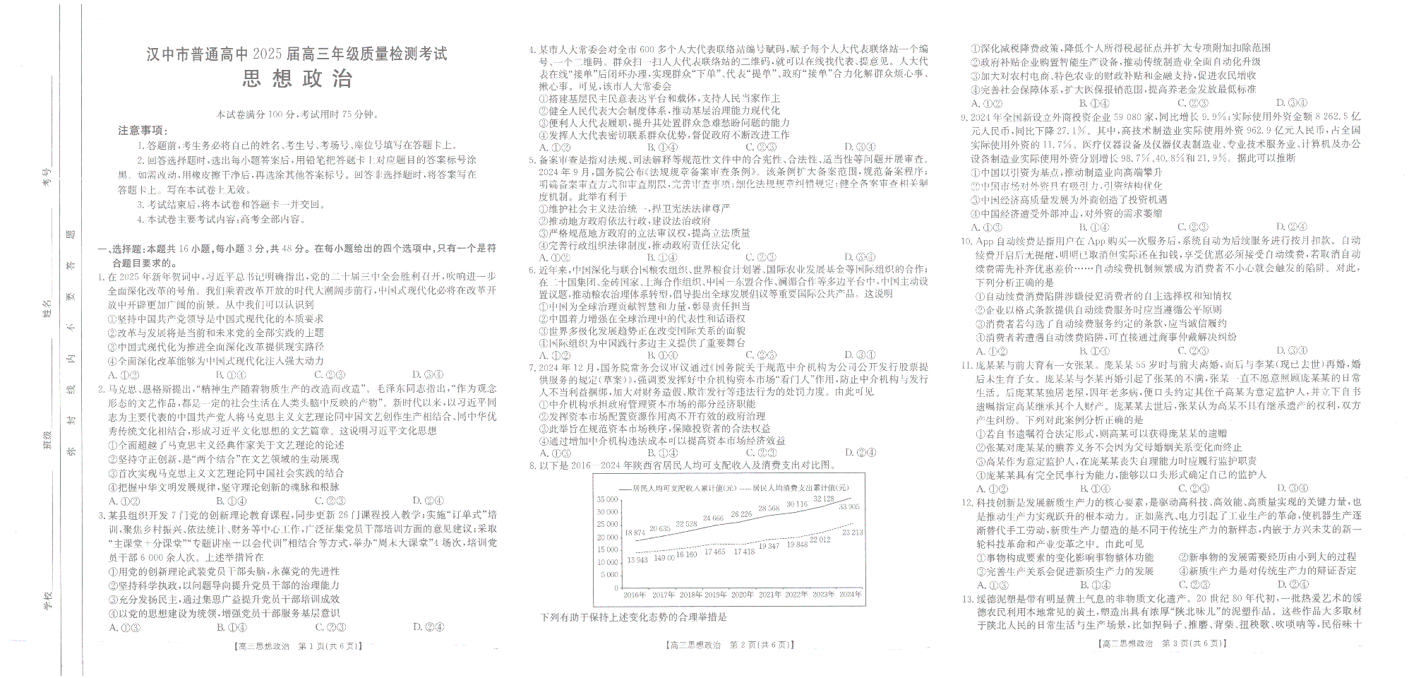 陕西省汉中市2025届高三年级质量检测考试(二模)政治(含答案).pdf