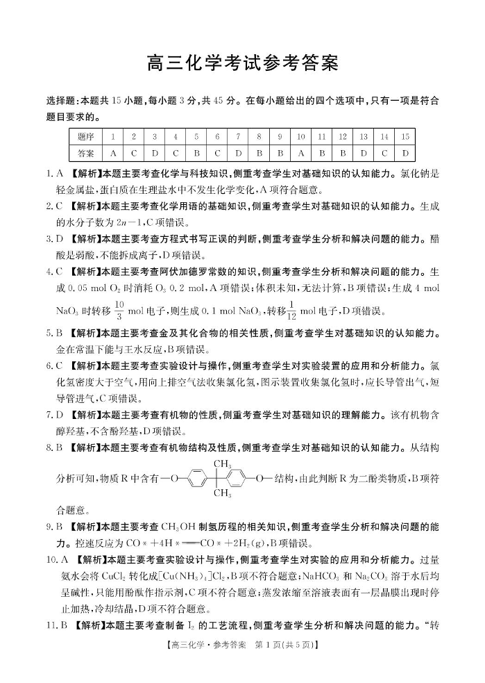 全国优创名校高三4月金太阳联考 化学答案.pdf