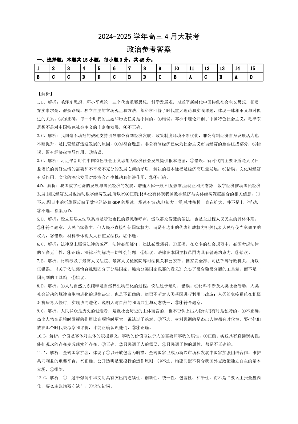 衡水金卷2025届高三年级4月份模拟考 政治答案.pdf