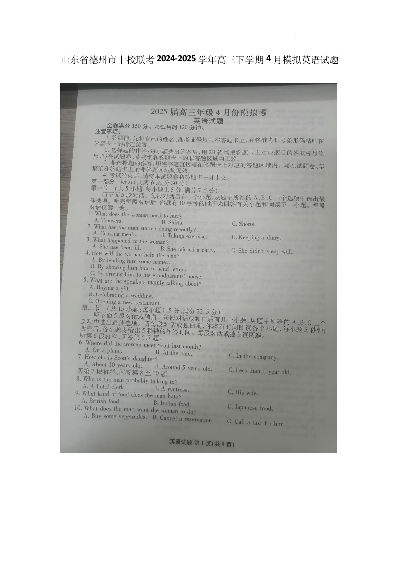 衡水金卷2025届高三年级4月份模拟考 英语.docx
