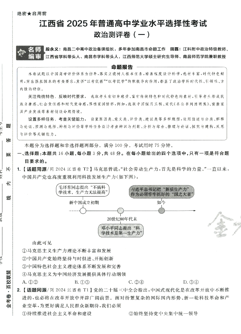 江西省 2025 年普通高中学业水平选择性考试测评卷 政治(一).pdf
