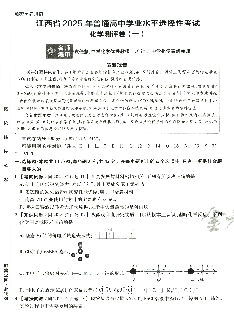 江西省 2025 年普通高中学业水平选择性考试测评卷 化学(一).pdf