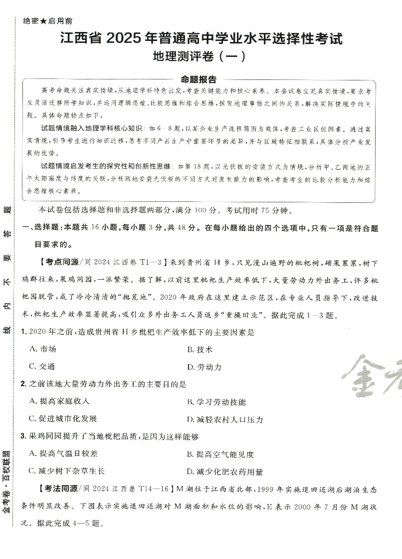 江西省 2025 年普通高中学业水平选择性考试测评卷 地理(一).pdf