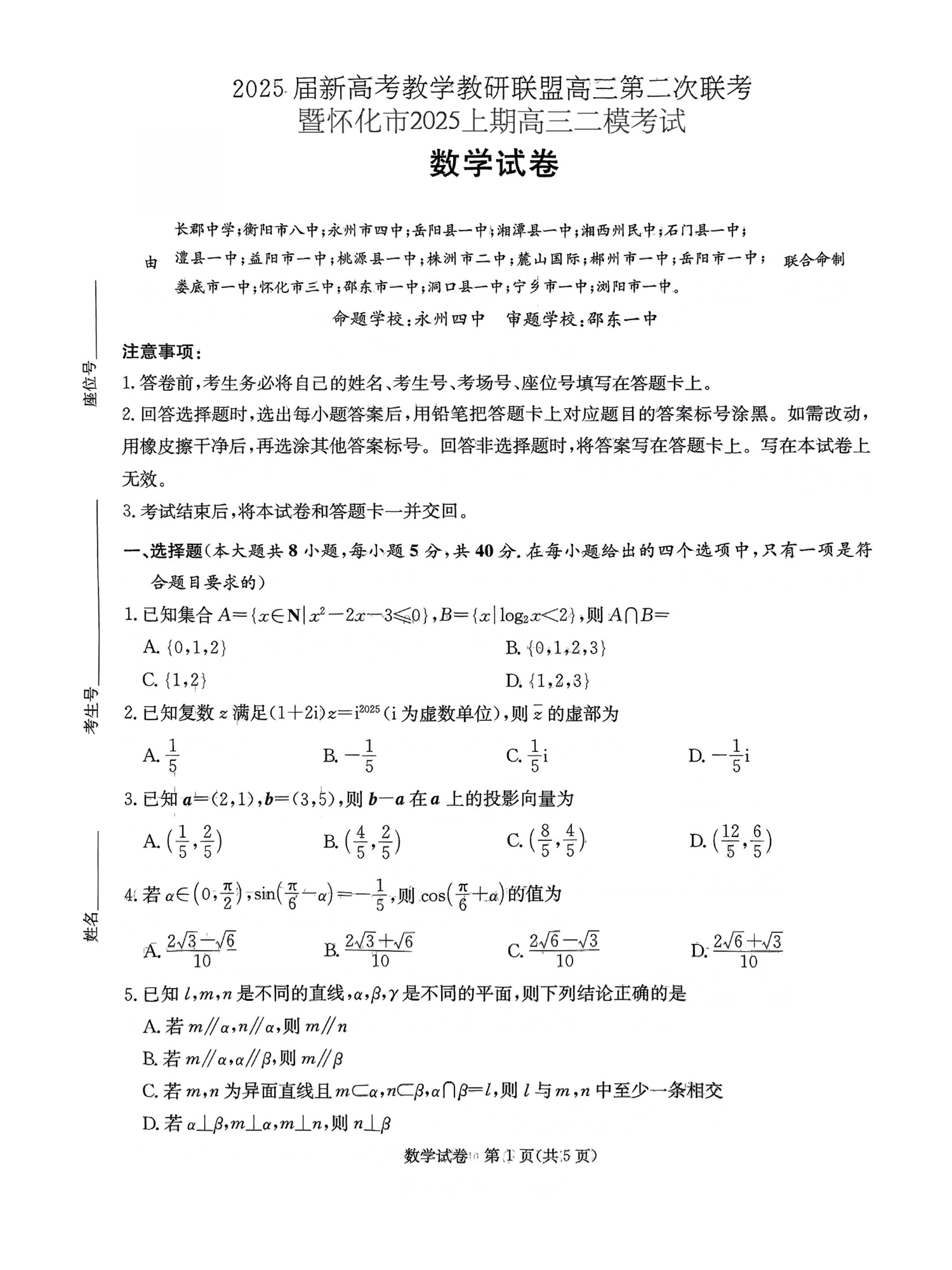 湖南新高考教学教研联盟2025届高三年级第二次联考 数学.pdf