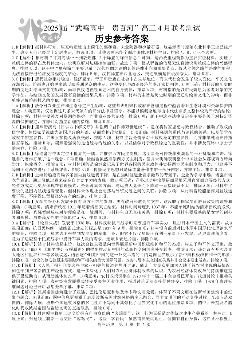 广西壮族自治区“武鸣高中-贵百河”2025届高三下学期4月联考 历史答案.pdf