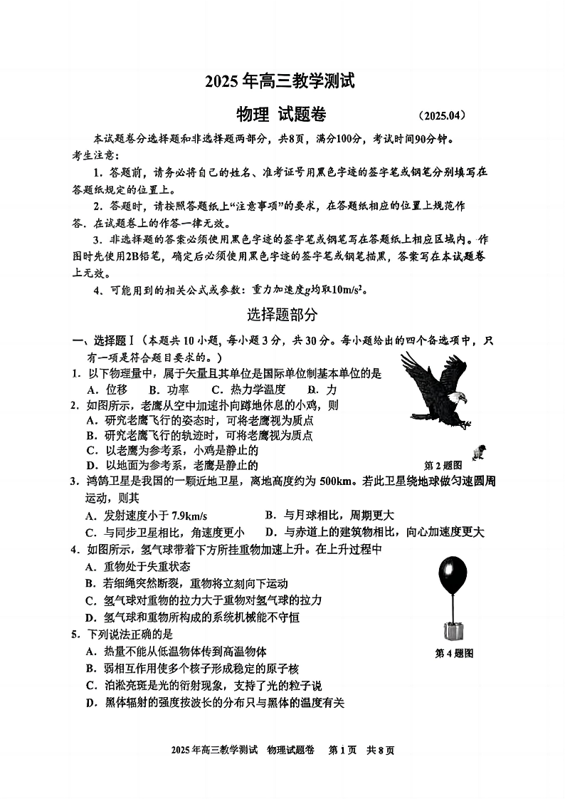 浙江省嘉兴市2025年4月高三教学测试 物理.pdf