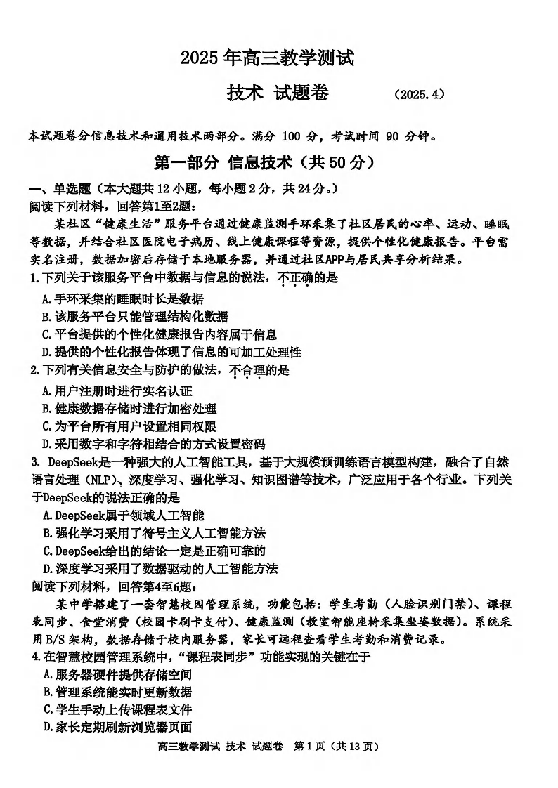 浙江省嘉兴市2025年4月高三教学测试 技术.pdf