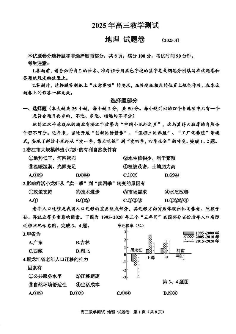 浙江省嘉兴市2025年4月高三教学测试 地理.pdf