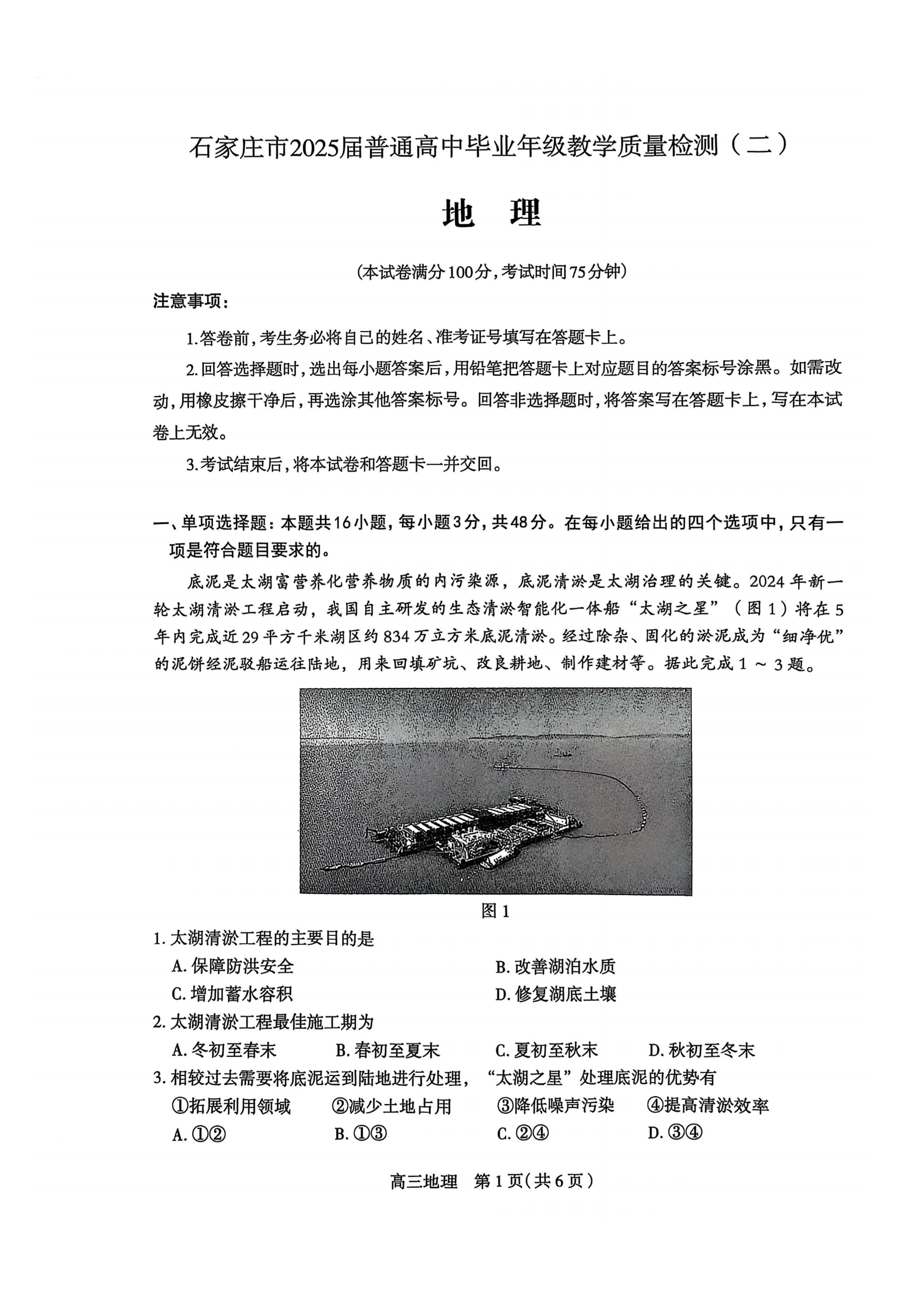 河北省石家庄市2025届普通高中毕业年级教学质量检测(二)地理.pdf