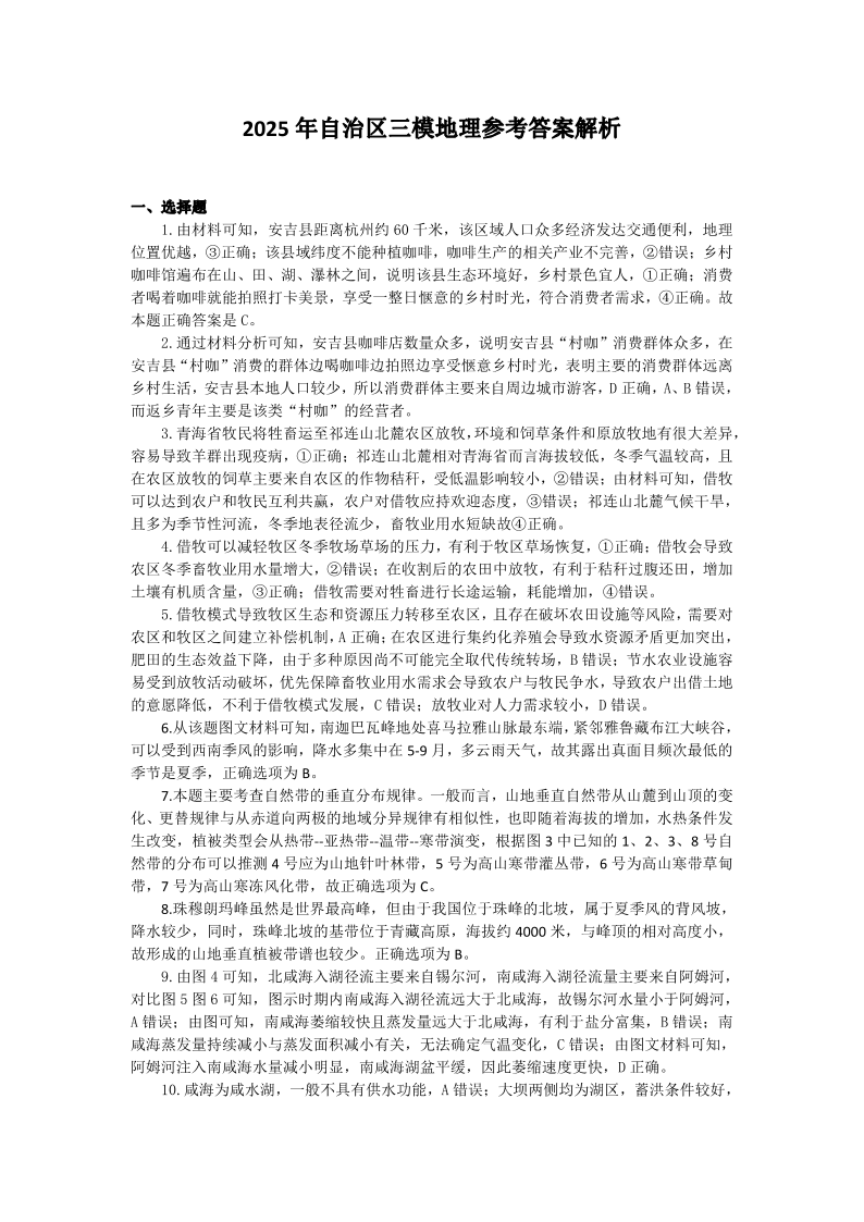 新疆维吾尔自治区2025年普通高考第三次适应性检测 文综地理答案解析.pdf