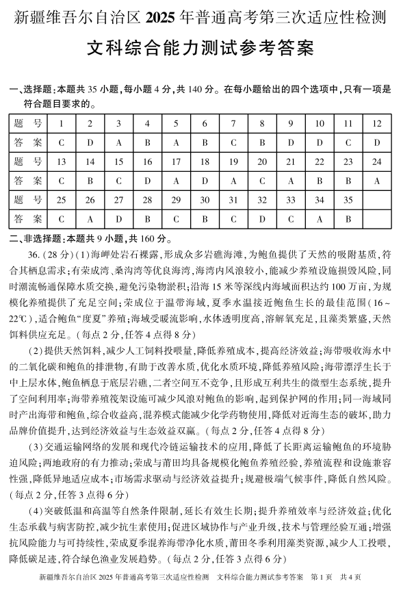 新疆维吾尔自治区2025年普通高考第三次适应性检测 文综答案.pdf