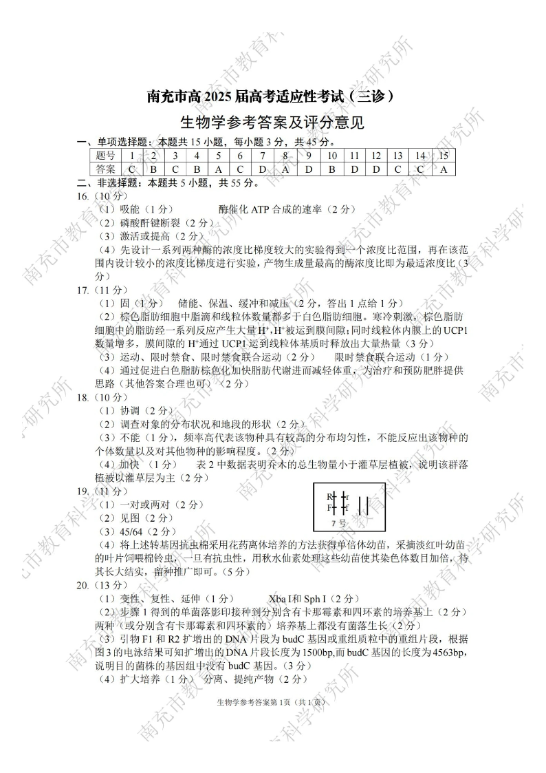 四川省南充市高2025届高考适应性考试(三诊)生物答案.pdf